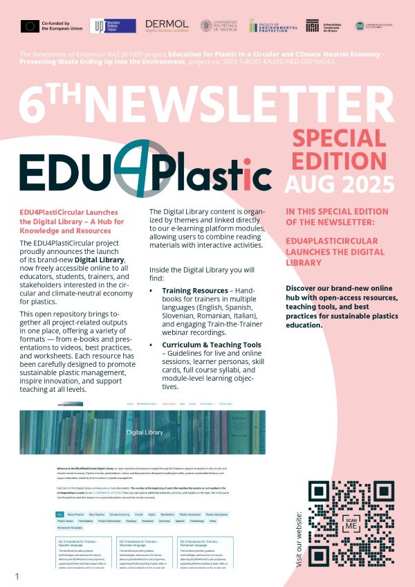 The EDU4PlastiCircular project is pleased to share the 6th edition of its Newsletter (August 2025 – Special Edition).